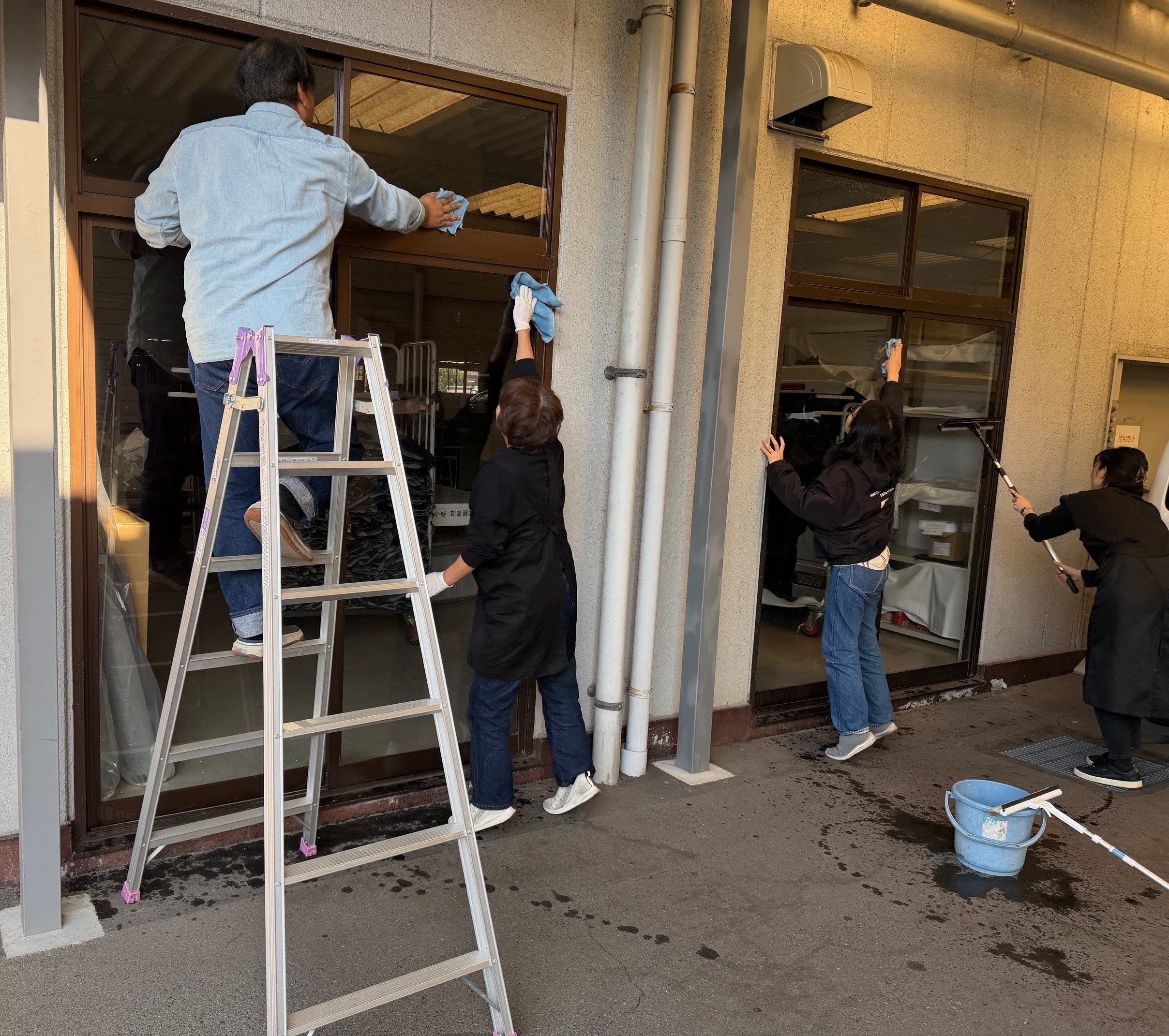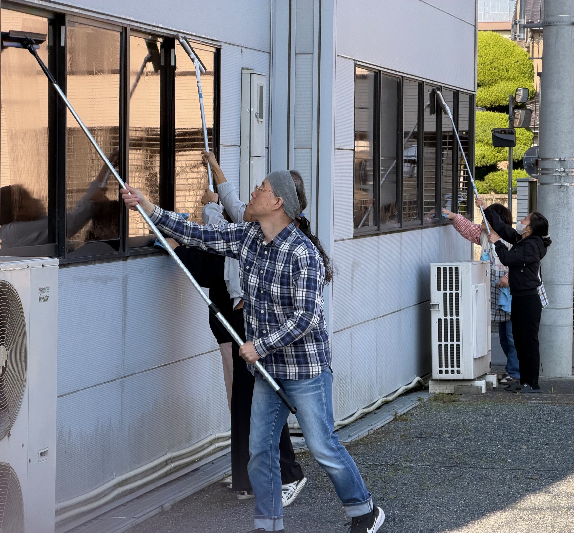 天候に恵まれため、全員で外側の窓掃除をしました。